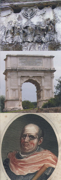 Vespasian entered northern Judea in 67 AD to find the country in a general state of lawlessness. First he subdued Galilee and the fortified town of Jotapata, which was under the control of Joseph ben Mattathius—better known as the historian Josephus. The fighting was fierce, the Jews were determined, and the Romans had advanced fighting equipment. However God had pre-ordained that this would be the end of the Mosaic era. Josephus joined with Vespasian in a vain attempt to stop the Jews fighting. Lawless bands of Jews resorted to the fortified Jerusalem ahead of Vespasian. Terror prevailed in the city even before the Roman army arrived. The second temple was captured and demolished by the Romans on the anniversary of its destruction by the Babylonians. It was the ninth day of the Hebrew month Av, AD 70, when Vespasian’s son Titus finally took Jerusalem. Over one million Jews died in Jerusalem alone. Tens of thousands were taken captive to Rome, of whom many were later destroyed in public games. Titus set up the Arch of Titus in Rome to commemorate his victory over the Jews. The Arch shows the Jews in subjection and the Temple treasures being looted by the Romans. It remains to this day as a symbol of the ascendancy of the Roman Empire and by extension the Roman Catholic Church against the Jews, for the Arch was later restored by one of the Popes.